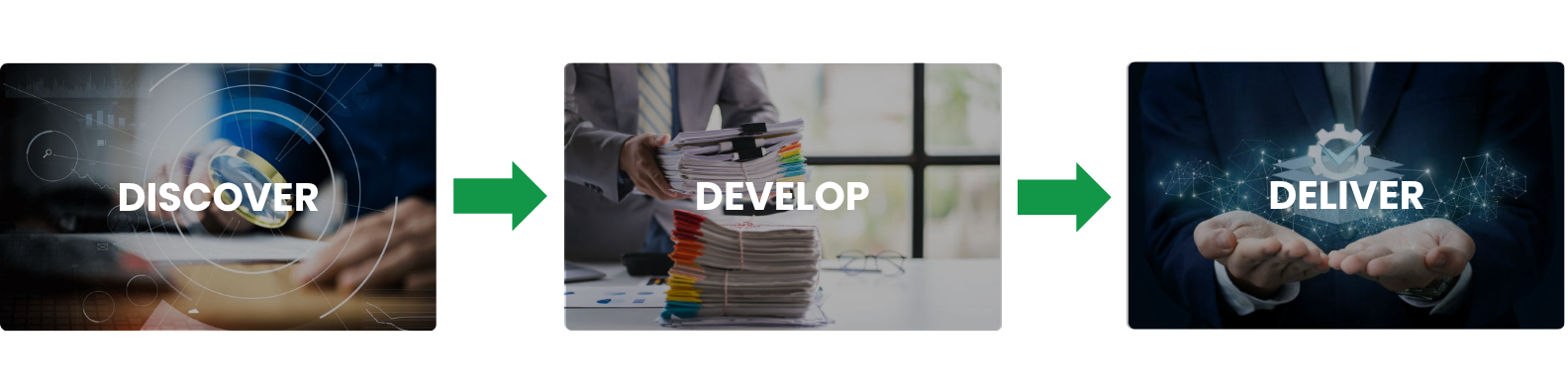 With each consultancy project, we work through a structured approach which we call: Discover – Develop – Deliver.